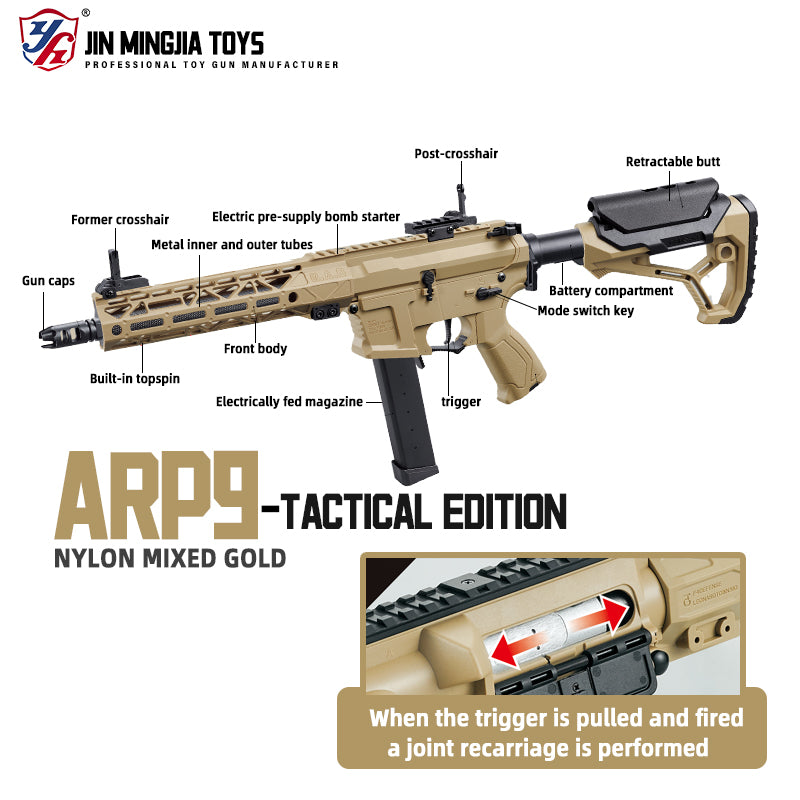 - Firing Mechanism: Electric motor drives a piston to compress air and launch the gel ball